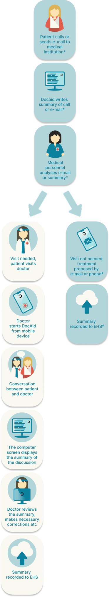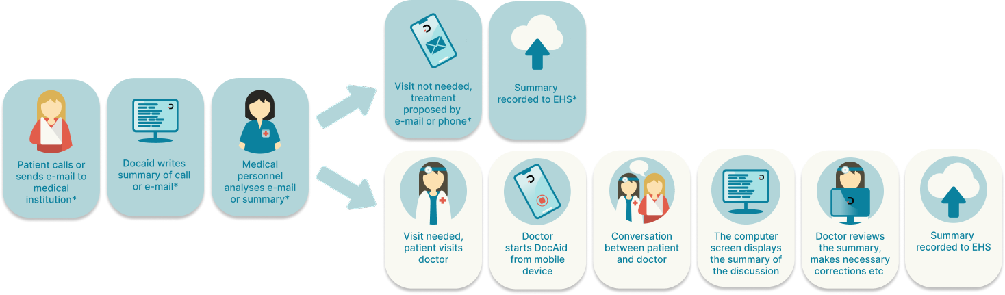 DocAid uses advanced multilingual AI to seamlessly capture conversations between doctors and patients – from the first interaction to post-visit feedback.